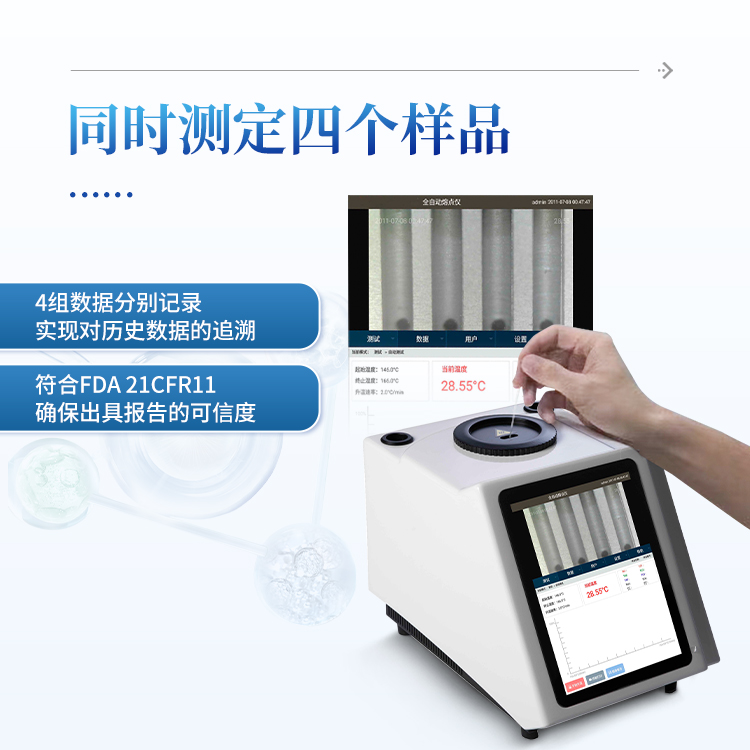 简要描述: 全自动熔点仪完美结合高精度控温技术和高清视频摄像技术,不但为用户提供准确、稳定、可靠的测试结果,还为用户带来高效便捷的测试感受。高清视频可方便清晰的看到样品熔化的全过程,自动检测实时图谱显示,方便用户准确测得样品熔点和熔距。